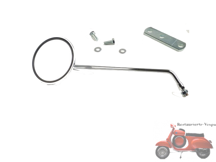 • Um diesen Spiegel an einer Vespa 50 N/S/L/R/Special zu montieren, benötigst du zusätzlich eine Spiegelhalterplatte, die unter den Lenkerschrauben befestigt wird.